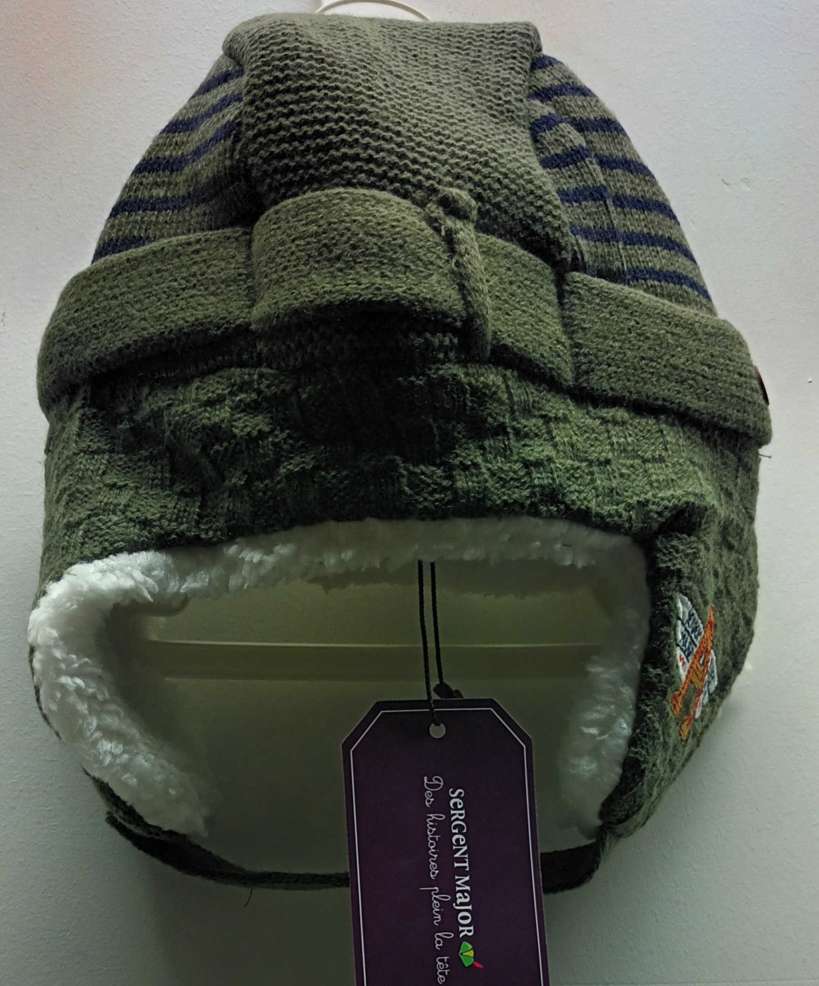 Bonnet bébé- Sergent Major-kaki- Doublé blanc- Protège oreilles- chaud et confortable- taille 1