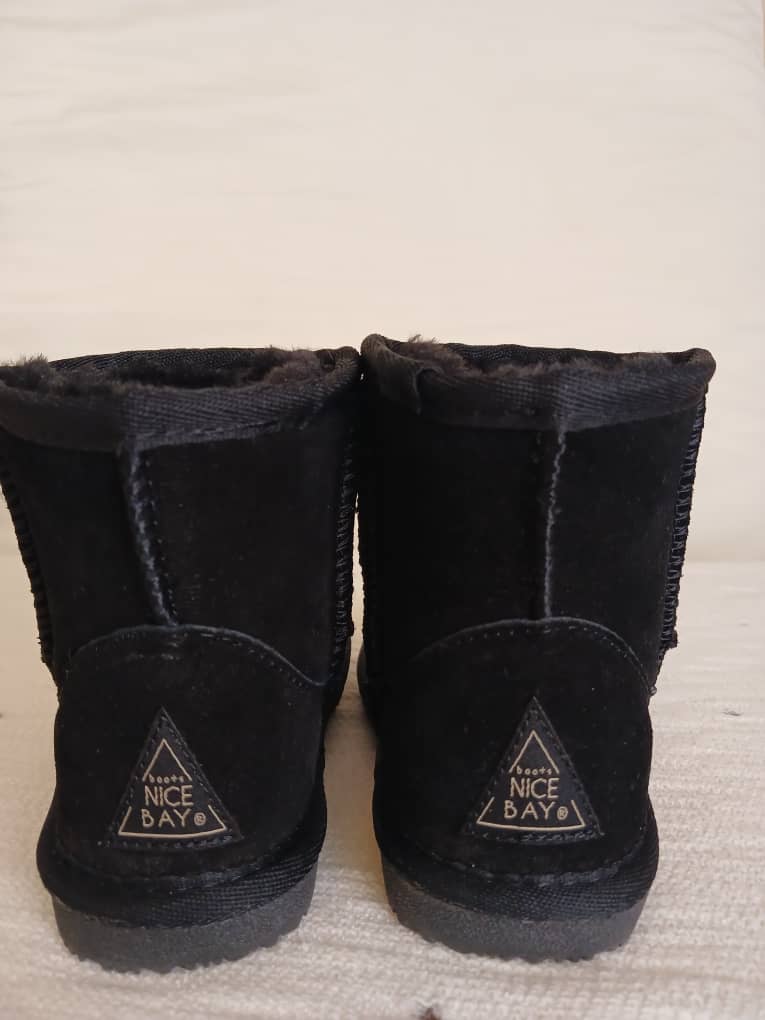 Boots Nice Bay cuir noir- pointure 26. Dessus et semelles intérieures cuir , fourrées pour un maintien des pieds bien au chaud et un confort optimal. Semelles extérieures souples antidérapantes. Facile à enfiler.