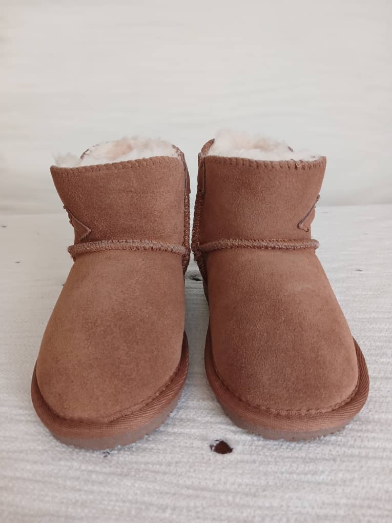 Boots Nice Bay marron- pointure 27 Dessus et semelles intérieures cuir , fourrées pour un maintien des pieds bien au chaud et un confort optimal. Semelles extérieures souples antidérapantes. Facile à enfiler.