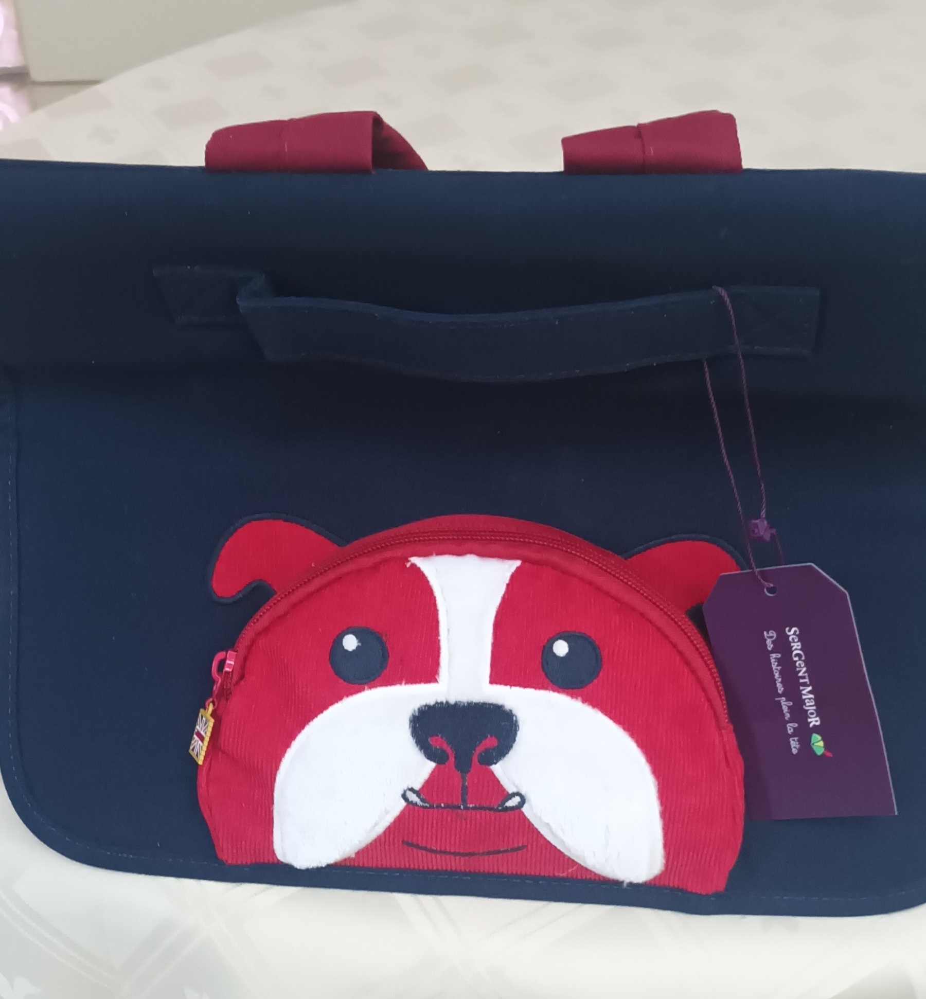 Un cartable Sergent Major- pratique et confortable- conçu pour le quotidien scolaire. A l’avant petite Poche supplémentaire  zippée et ornée d’un dessin rouge  ludique pour les petits rangements . Deuxième poche pour cahiers petits formats en plus de la poche principale- bretelles rembourrées, confortables et réglables. Résistant