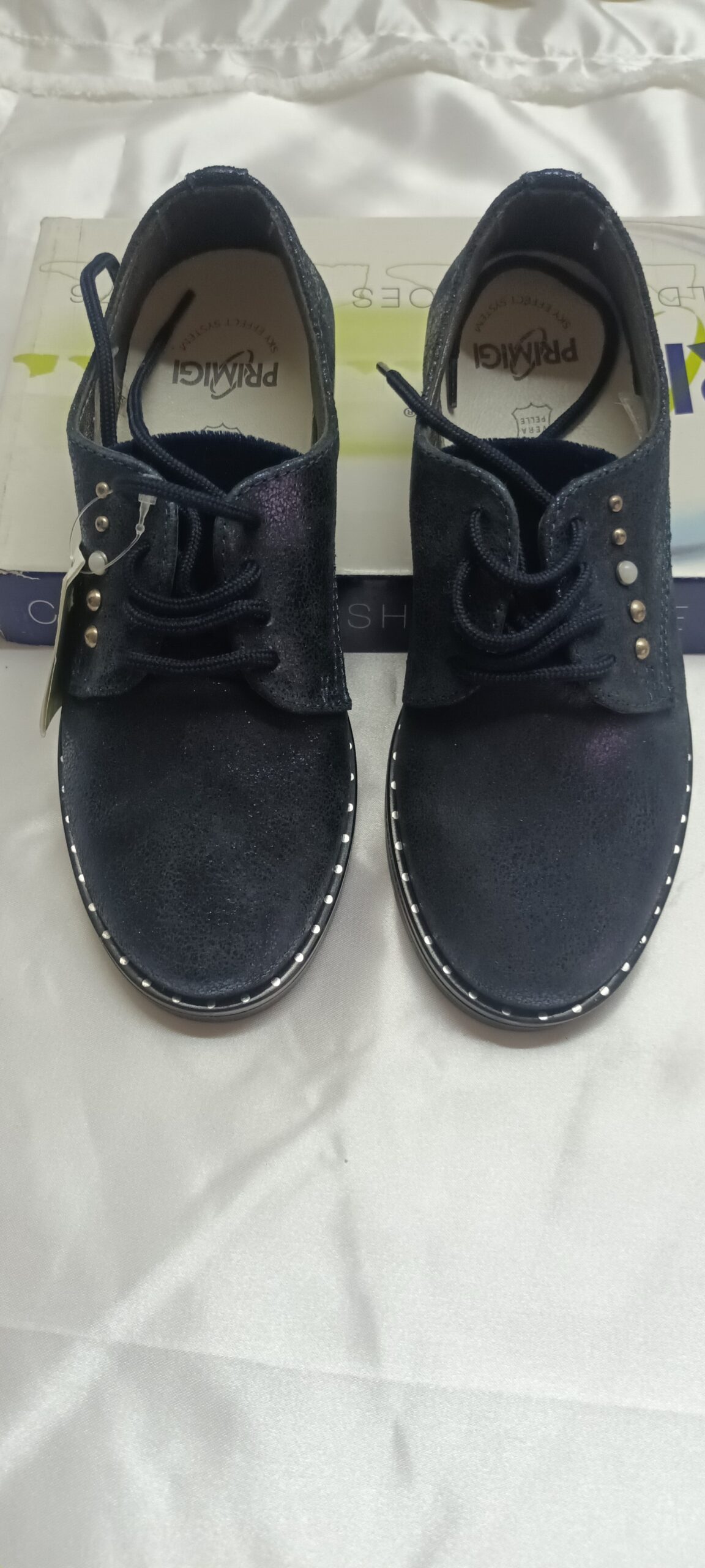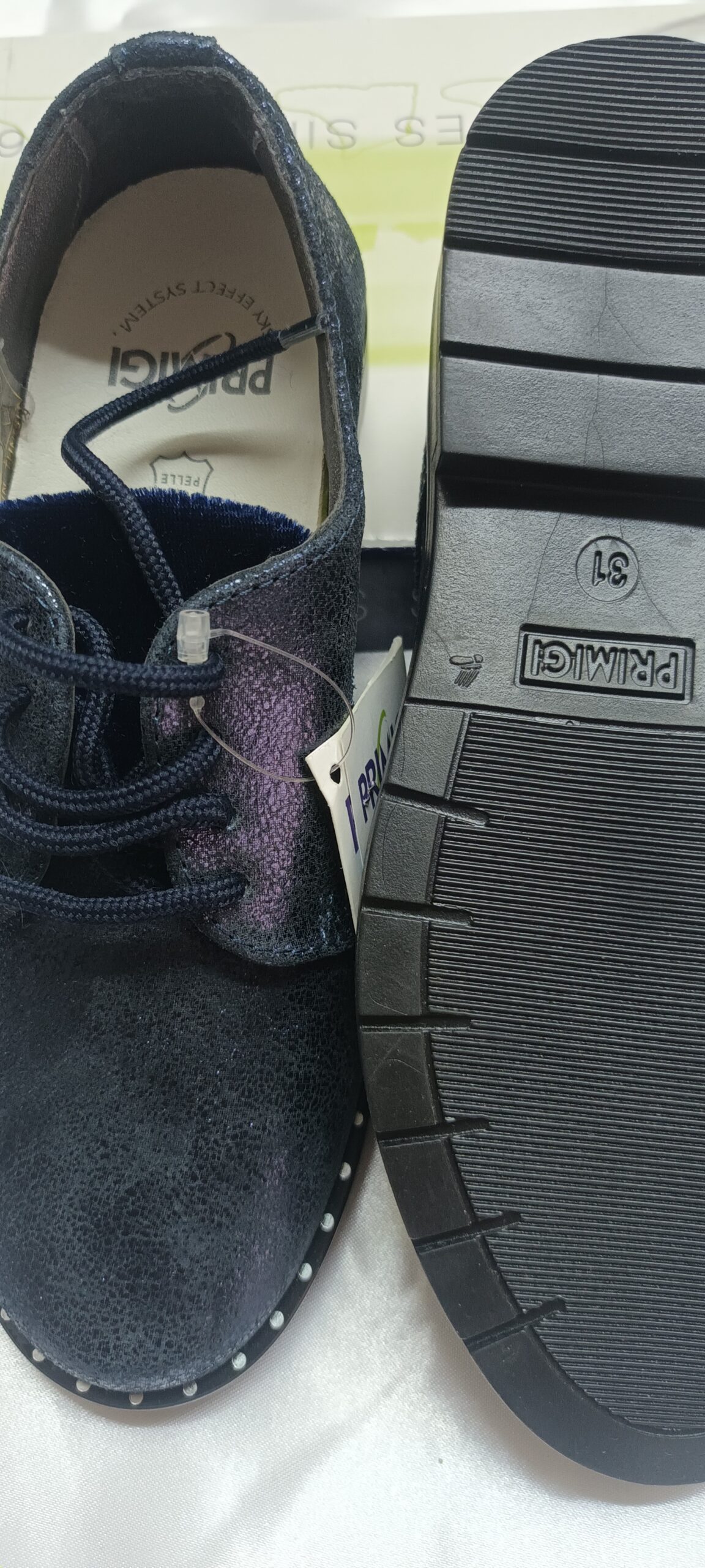 Chaussures élégantes et confortables signées Pimigri. Coloris bleu marine ornées de petits clous décoratifs et fermeture à lacets. Un style chic et tendance pour toutes accasions.