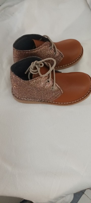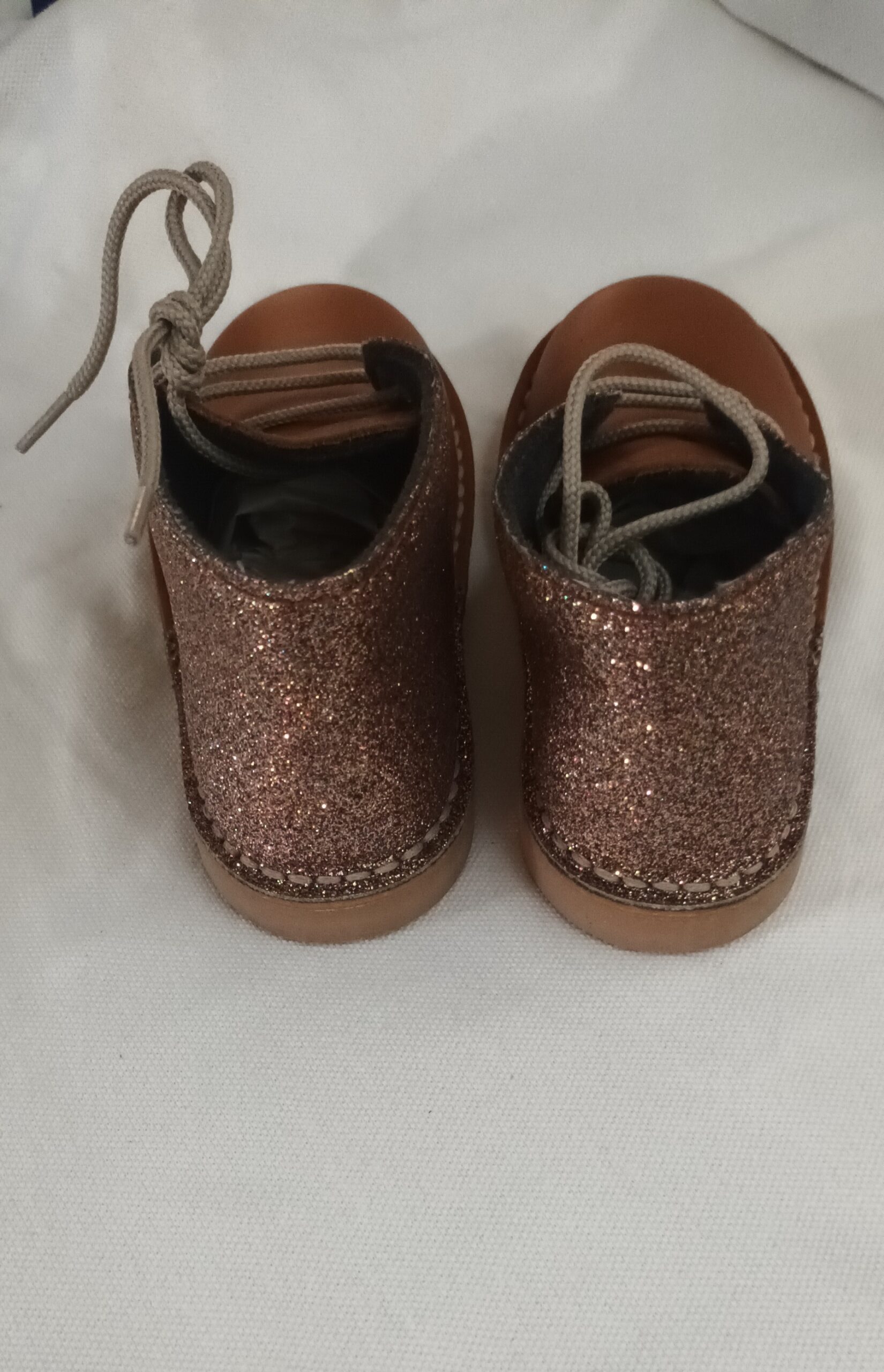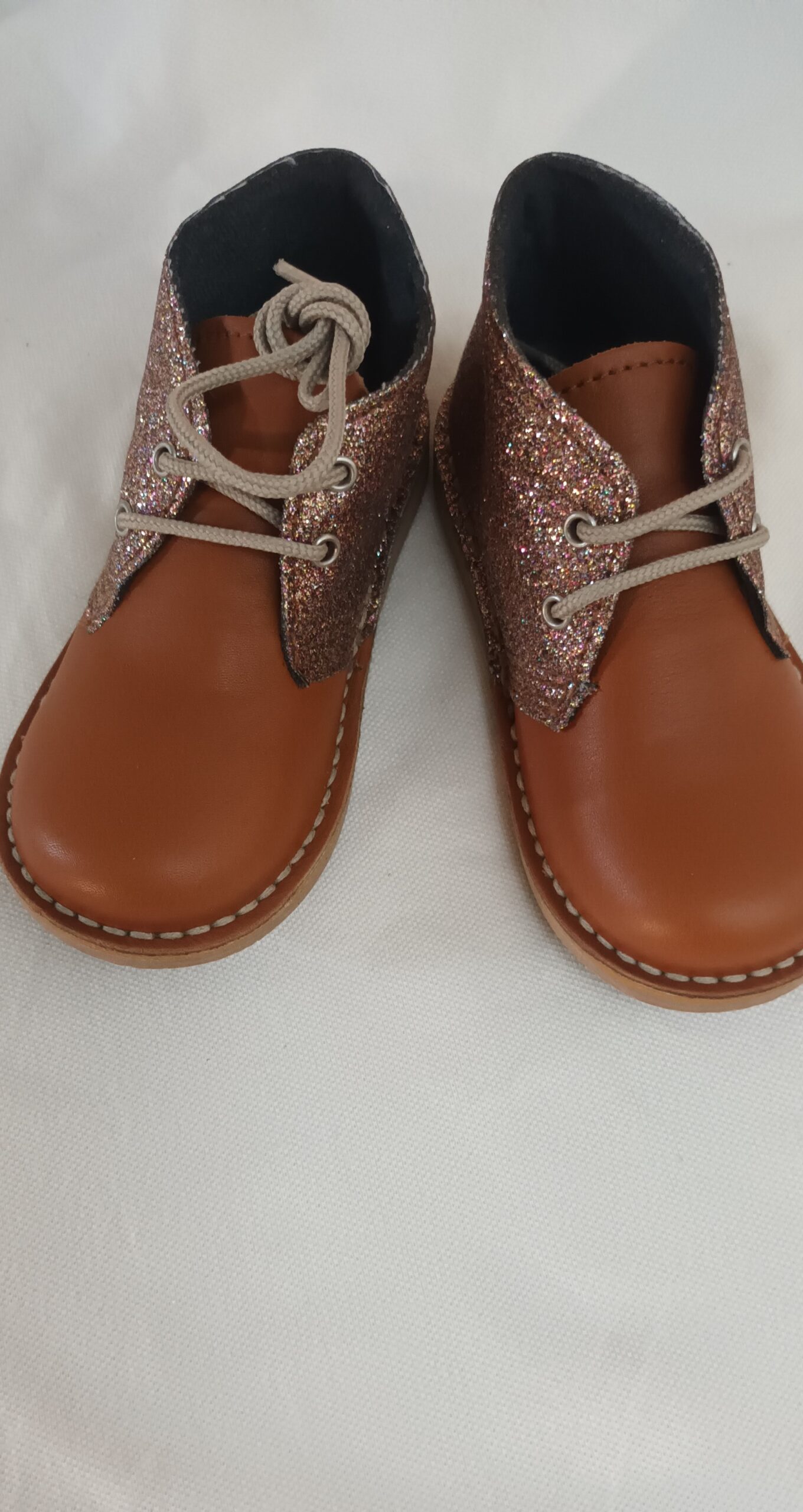 Chaussures Little Celebs en cuir marron avec détails dorés sur les côtés et l’arrière. Convient pour tous les jours ou avec tenues habillées