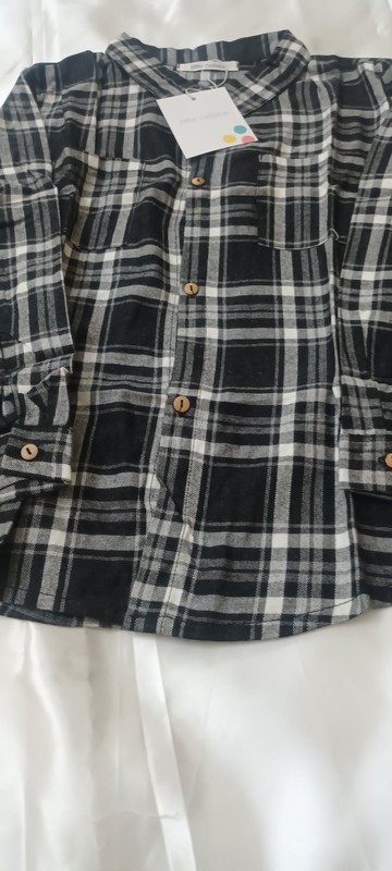 chemise à carreaux noir et blanc de marque Little Celebs. Manches longues en coton. Chaude et Confortable.Taille 8ans