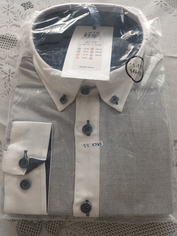 chemise grise et blanche manches longues en coton de marque LMTD. Taille 11 / 12 ans. Confortable et élégante, idéale pour les occasions spéciales