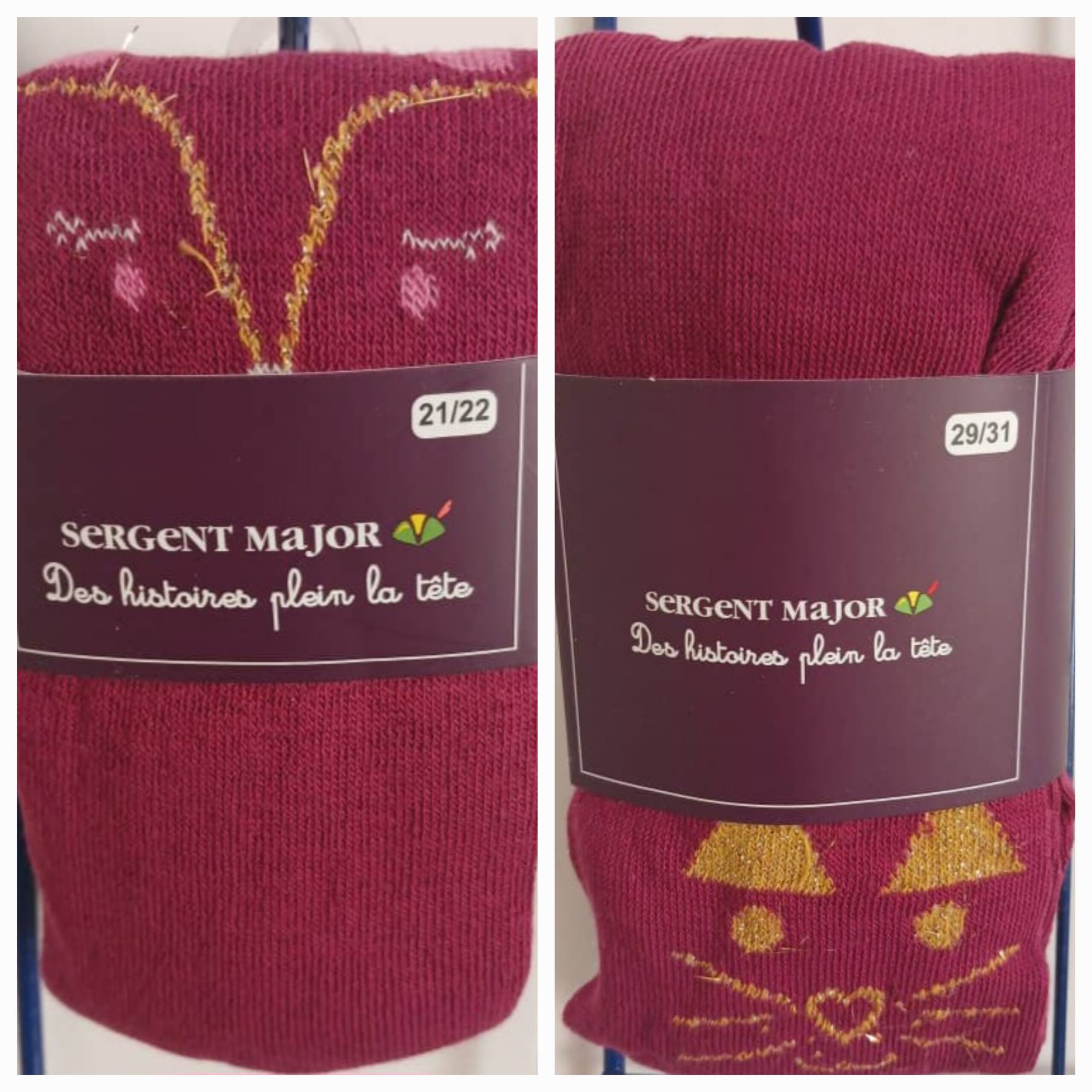 Collants Sergent Major dans une jolie teinte prune, rehaussés de fils métallisé très fins pour une touche discrète de brillance. Parfait pour occasions spéciales . Le coton majoritaire( 77% ) apporte douceur et confort- Le polyamide ( 20% ) et l’élasthanne ( 2%) donne tenue et élasticité. Fibre métallisé ( 1% ) pour un effet brillant. Taille 21 / 22 et 29 / 31.