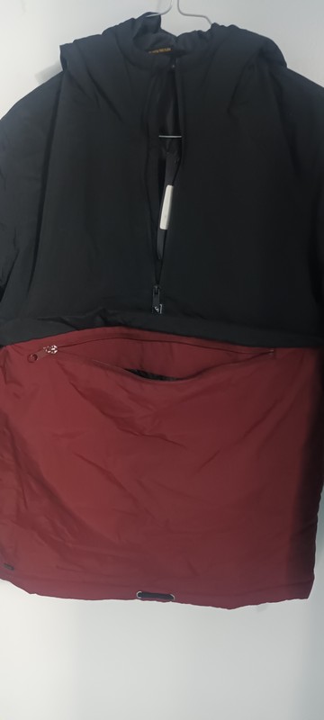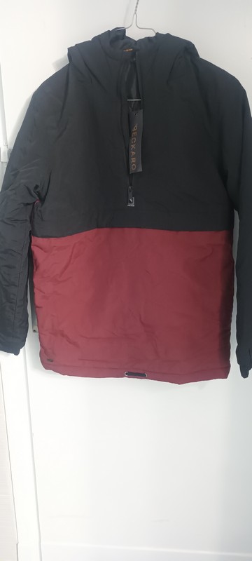 Doudoune chaude et légère signée Beckaro- Bicolore noir et grenat- Poche zippé devant- cordon de serrage à la taille- Pratique et facile d’entretien.