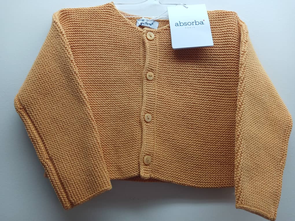 Petit gilet en maille douce-100% coton- ocre- boutonné devant- agréable et chaud- 9 mois