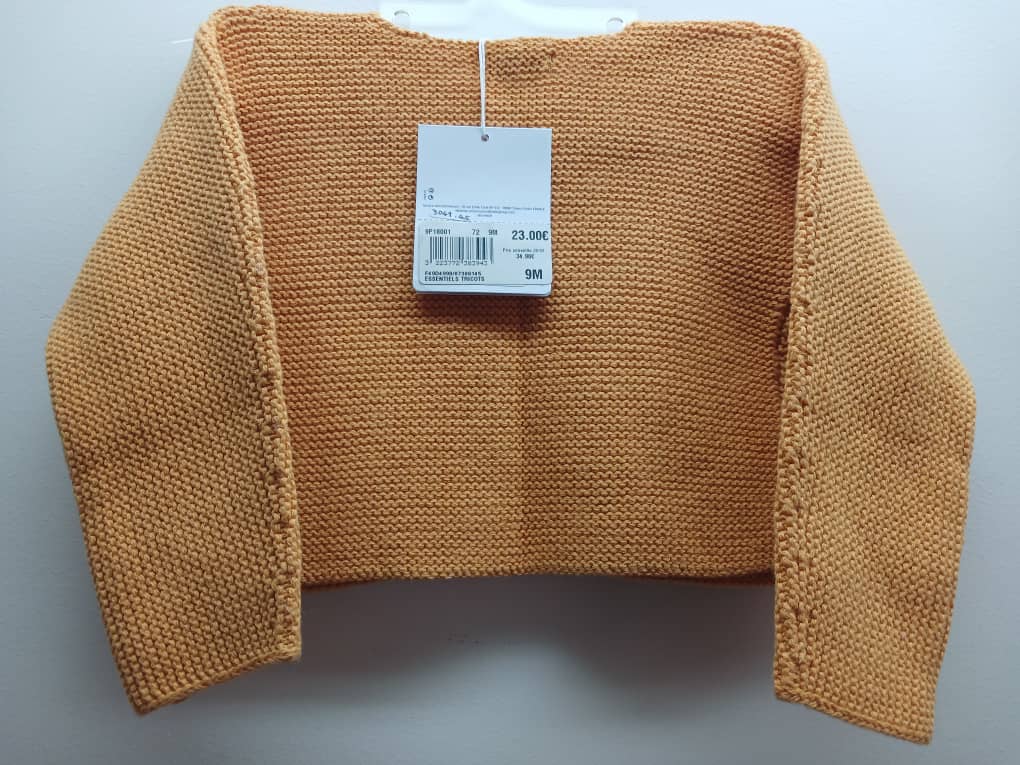 Petit gilet en maille douce, jolie couleur ocre boutonné devant; agréable et chaud en coton doux et respirant. Taille 9 mois