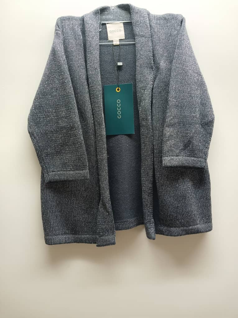Joli gilet Gocco en maille gris clair subtilement brillante grâce à ses fils métallisés. Matière souple et brillante. Idéale pour les tenues de fêtes ou simplement pour égayer une tenue au quotidien.