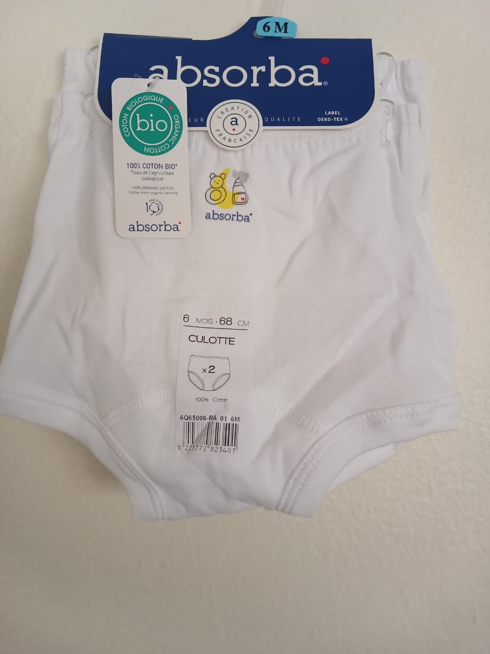 Lot de 2 slips Absorba, marque connue pour la qualité et le confort de ses sous-vêtement bébés.