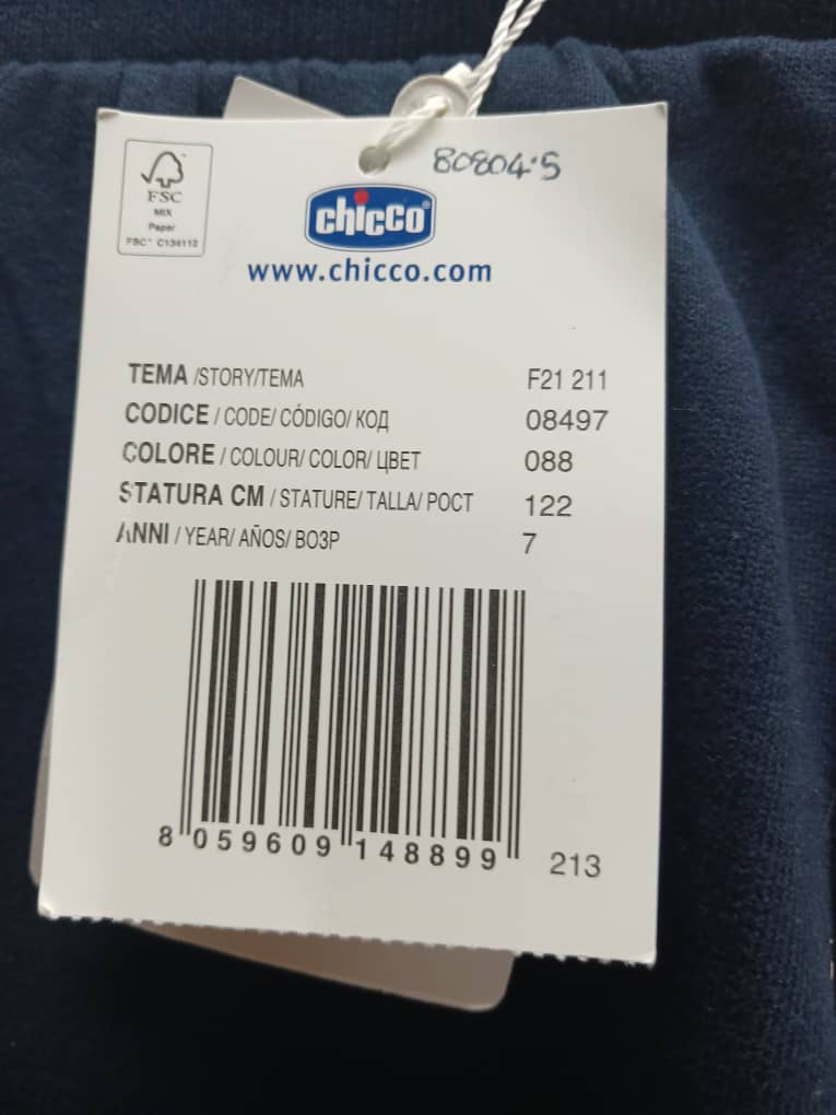 Pantalon confort- marine- Chicco- coton doux 100%- coupe soignée- taille élastiqué- facile à enfiler-7 ans