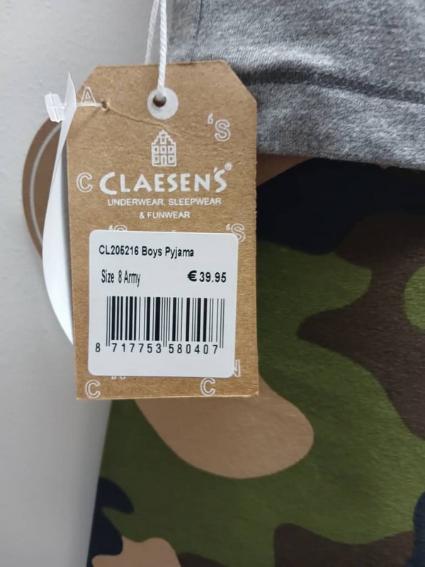 Pyjama Claesen’s doux et extensible. Haut gris avec petite poche imprimé camouflage, assorti à un bas camouflage. Confectionné dans un mélange de 95% coton et de 5% Lycra pour une bonne tenue. Un ensemble doux, moderne, confortable et original. Parfait pour la détente ou pour la nuit.