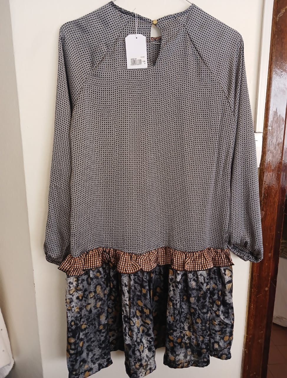 Robe Miniman- 12 ans; multicolore en polyester effet soie. Légère et fluide. Bas à volants pour une touche élégante et aérienne. Modèle chic à porter à de petites occasions
