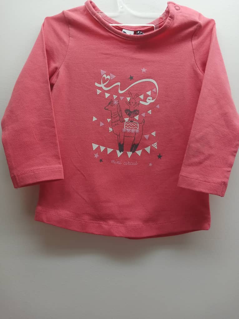 T-shirt rouge – 3 Pommes avec dessin sur le devant et pressions à l’épaule. 95% coton; 5% élasthanne.3 /6 mois