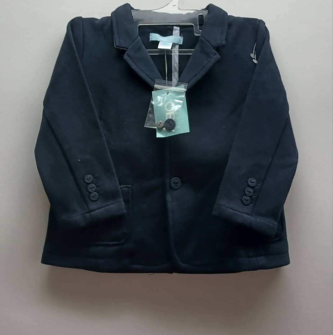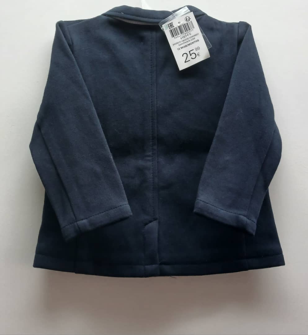 Petite veste Obaibi pour bébé. Coloris marine au style blazer. 100% Coton- douce et confortable- 12 mois